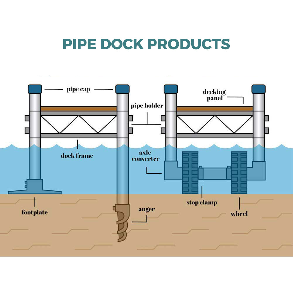 You can install the frame first—without the decking—making each section easier to handle and position. Choose your decking, pipe lengths, and quantity of sections to build a shoreline dock system that fits your exact needs.