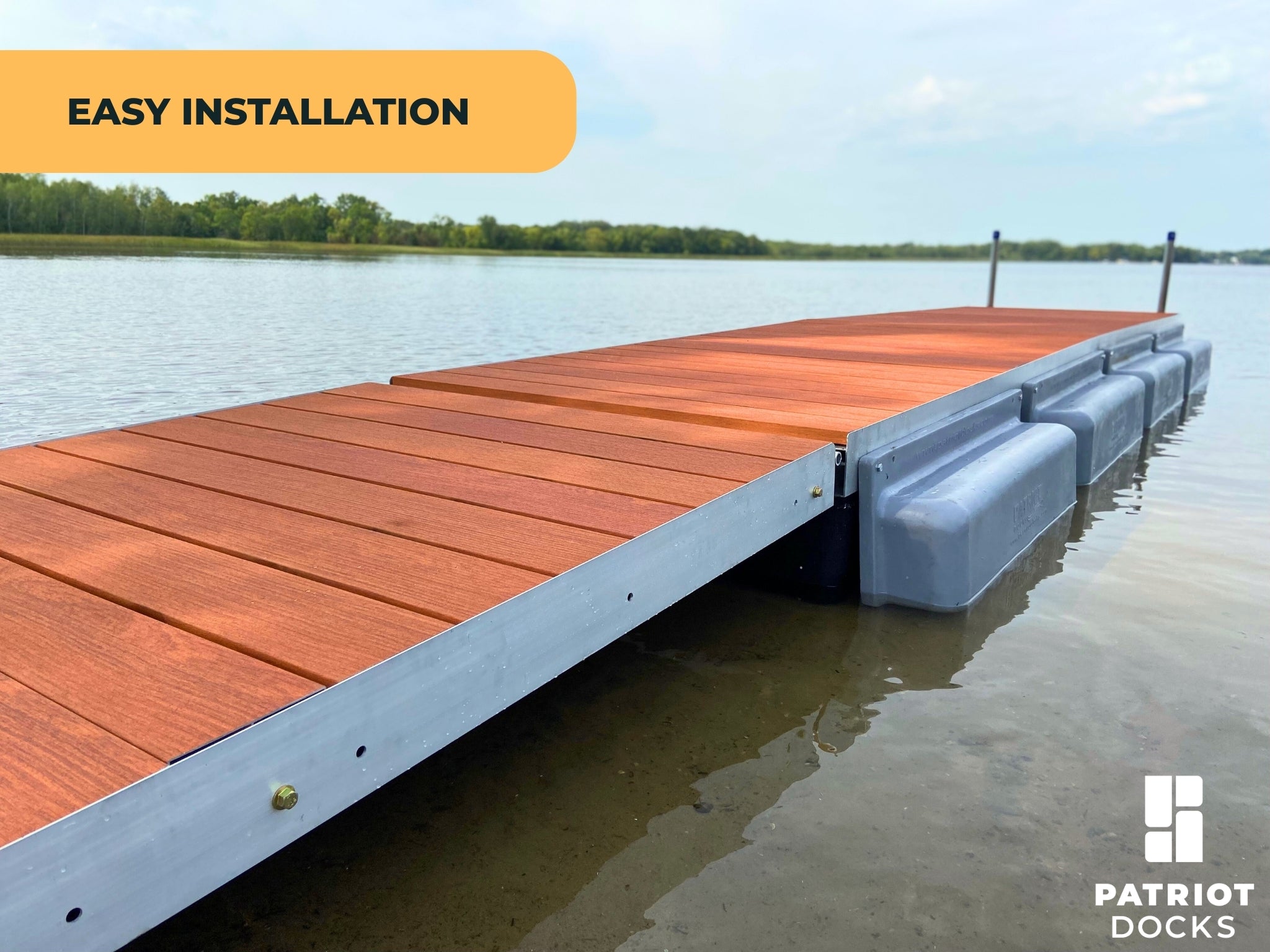 The Patriot Docks Low Profile Floating Dock Package is our most streamlined floating dock system, designed for waterfront owners who need an easy, reliable solution for changing water levels. It’s ideal for lakes, rivers, or reservoirs where water depth exceeds 6–8 feet or fluctuates seasonally.