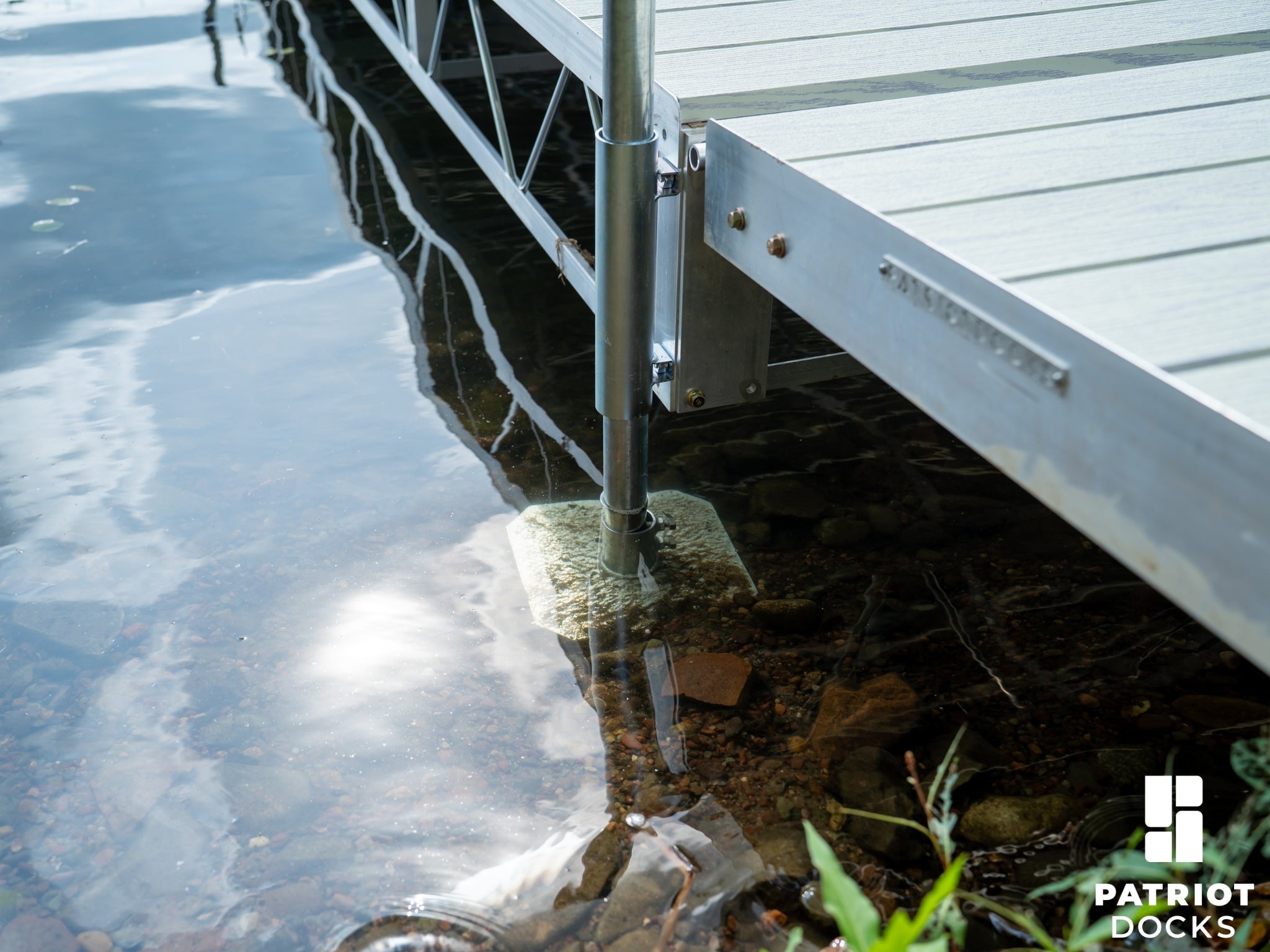 With a 10″ x 10″ surface area, the base pad distributes weight effectively, preventing your dock from sinking into sandy, muddy, or rocky bottoms. Each pad features two set bolts for an ultra-secure grip on the pipe—so if one ever loosens, the second still holds strong.