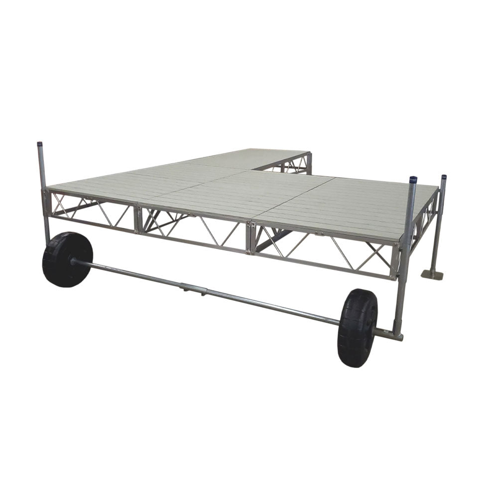 Engineered with the tallest and strongest aluminum truss frames on the residential market and a rugged roll-in wheel system, this dock handles changing water levels, uneven lake bottoms, and seasonal movement with ease.