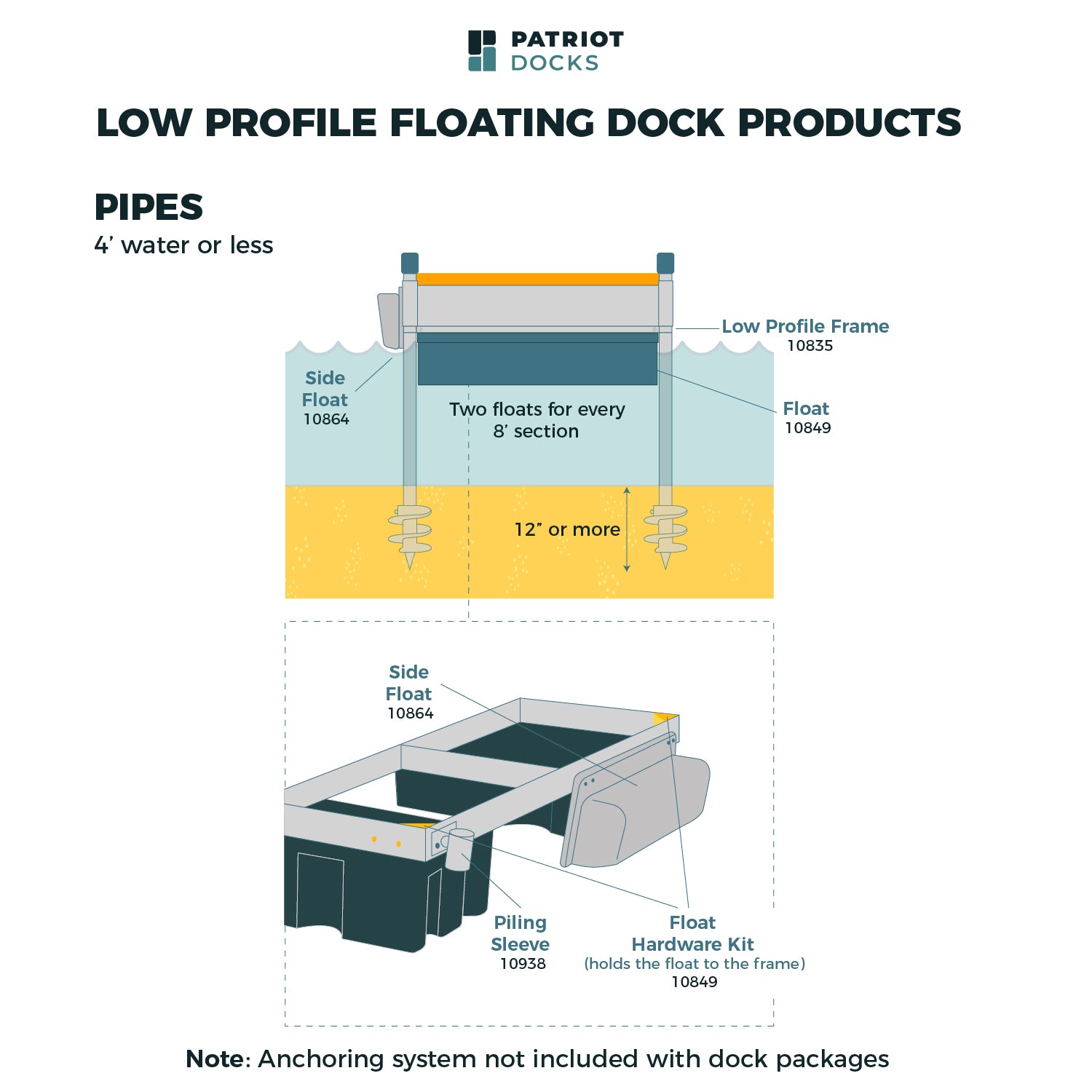 - Compatible with Patriot Docks Low Profile and Truss Frames
